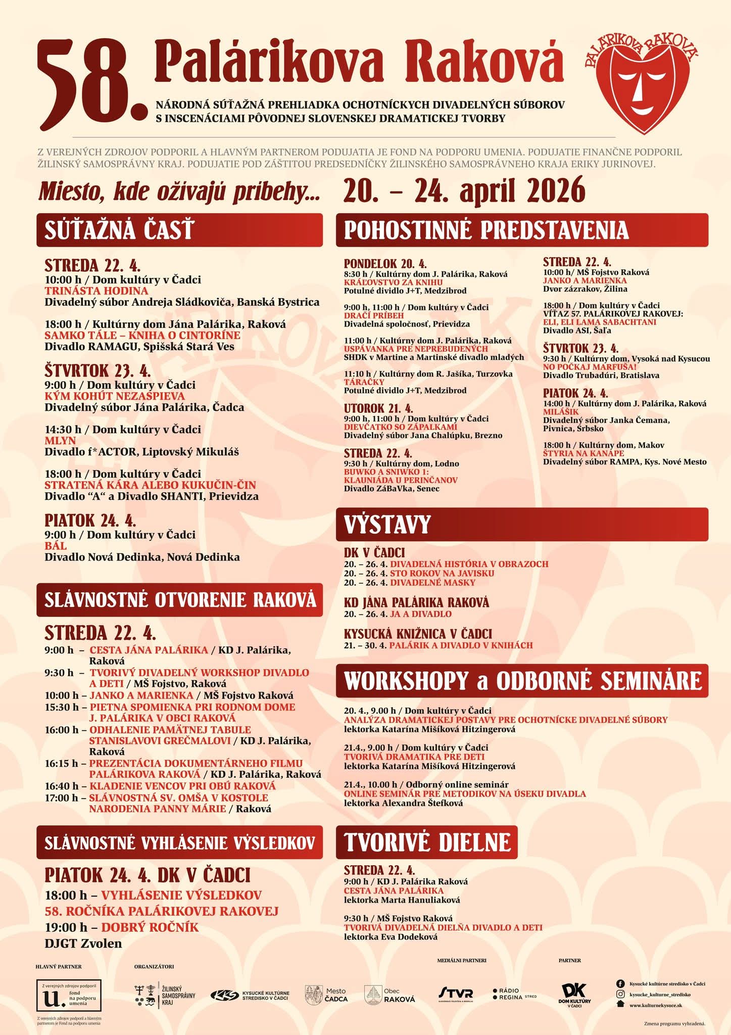Pozývame Vás v stredu 22.4.2026 o 18,00 hod. na zaujímavé ochotnícke divadelné predstavenie do Čadce. Bližšie informácie o predstavení nájdete tu.